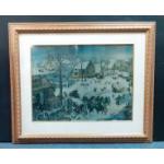 Modern large print of a winter scene by PIOTR BRUEGEL The Census at Bethlehem 83cm X 69cm approx. in attractive modern gilt frame
