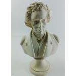 An alabaster bust of Beethoven standing approximately 22cm tall.