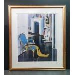 A stylish framed print of a cosy living room scene signed indistinctly HARTALL. Frame measures 82cm x 72cm approx