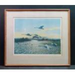 A signed limited edition PETER SCOTT print of North Wind, Berwick Swans, frame size 75 x 65cm approx
