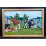 PEEBLES INTEREST - an original oil on canvas "CLYDESDALE CORNER, PEEBLES AGRICULTURAL SHOW HAYLODGE PARK" c. 2006 by MARIE C KEAY. Frame 84 x58cm approx. Framed and limewaxed obiche wood moulding.