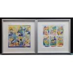 Two limited edition pop art prints by BERND FLEMMING one titled CUP (306/560) and the other entitled SIX (97/560). Frame size 85 x 84cm approx