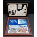 A framed 2002 Winter Olympic Games in Utah framed First Day Cover and a framed Aneurin Bevin NHS Cartoon by Furneval