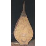 A HUGE pair of ANTIQUE blacksmith's bellows made of wood and hide with brass decoration, 162cm long x 75cm at widest point approx