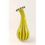 A gourd vase in a vibrant yellow with a green stripe standing 31cm approx, possibly of Czechoslovakian origin.