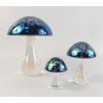 HERON GLASS. A wonderful set of three gorgeous art glass mushrooms. The largest 16cm. All in excellent condition.