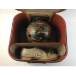 UNUSUAL - A USA cased vintage BRUNSWICK litewate mineralite P6 N37V5 funky 10-pin bowling ball. With vintage shoes.