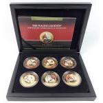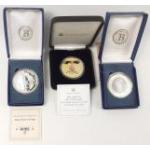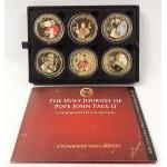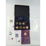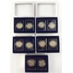 A box containing five WESTMINSTER MINT gilded coins and also two five pound coins