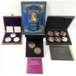 A lot of numismatic interest to include 5 coin folders (only 4 coins between them), and four silver proof cased Pobjoy D-Day 50 pence coins