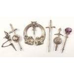A nice little collection of five silver kilt pins and a torque plaid 7cm dia, gross weight 93g approx