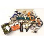 An interesting mixed box of costume jewellery and watches to include many bangles and beads