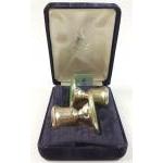 An antique rare and impressive Royal Artillery officer's mess table centre piece shell holder, 28cm diameter, shell aperture 105mm with applied RA cap badge, A beautifully made piece in lovely uncleaned condition