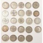 A quantity of pre-1947 0.500 silver coinage to include crowns and florins. Some in good grade. Total weight 285g approx.
