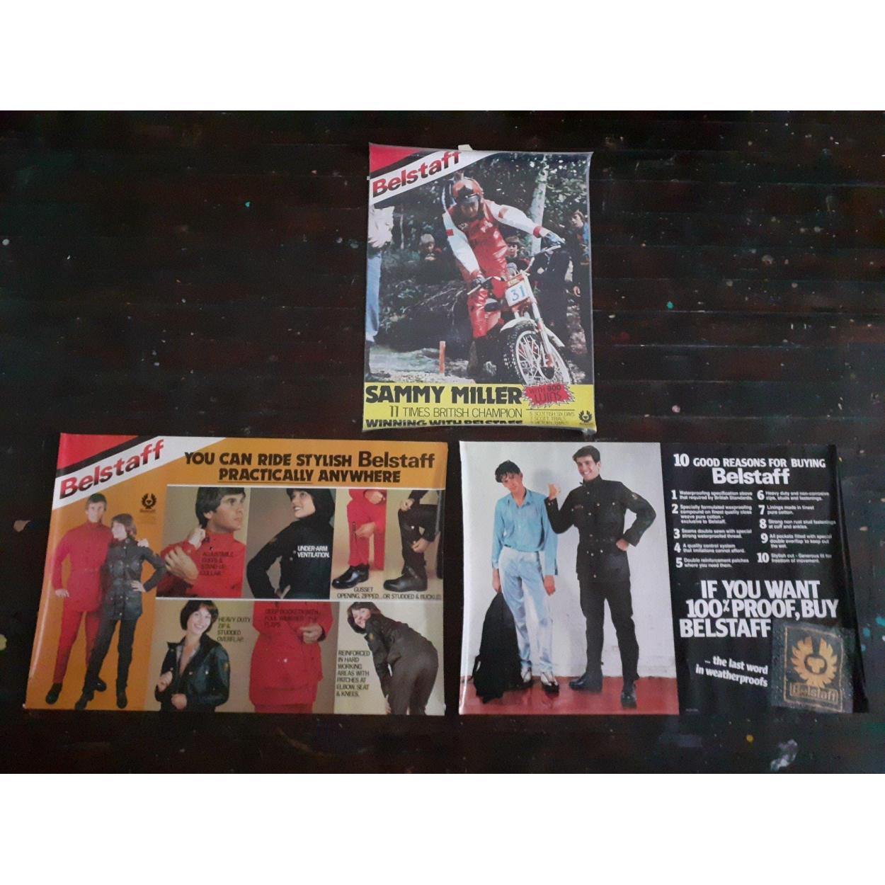 Three BELSTAFF motorcycle crash helmet and cycle wear posters including one featuring SAMMY MILLER largest 60x48cm approx