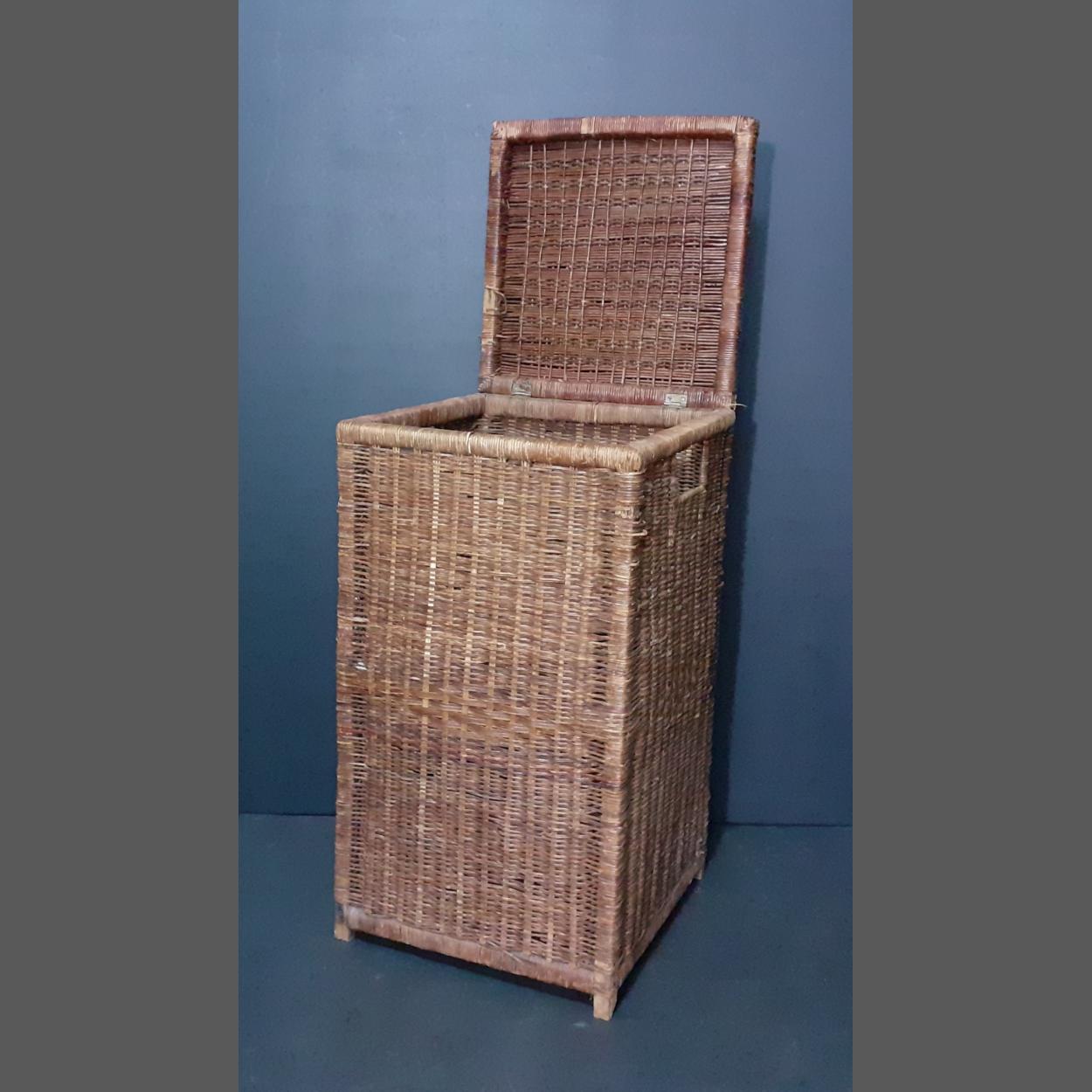 A tall wicker basket measures 60x32x32. Some loss to the wicker from use but overall good condition