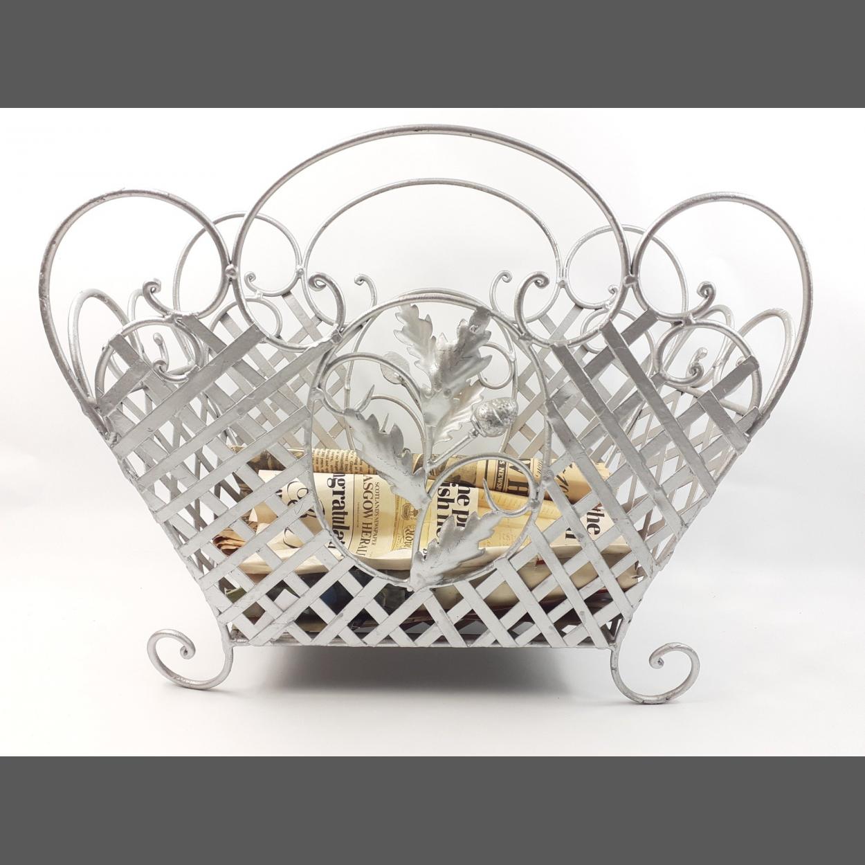 Pretty and useful - a wire magazine rack H40cm x W50cm, silver painted and in good condition