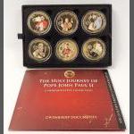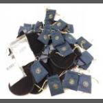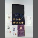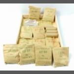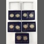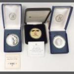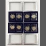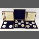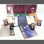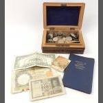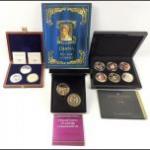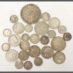 A small silver collection including 2 small glass jars with silver lids and gilt interior (27g approx), indistinct Birmingham hallmark, an etched glass jam pot with silver lid (Birmingham hallmark 22g), 2 spoons (1 with Sheffield mark), a 4 piece condiment set (Sheffield and Birmingham W&H marks weight 117g approx), a miniature toasting fork with mother-of-pearl on handle (Sheffield 1900 gross weight 61g approx), a teaspoon (Glasgow 1886 weight 16g approx), 2 butter knives with hallmarked handles (Sheffield 1966, gross weight 38g approx) 6 butter knives with hallmarked handles (indistinct Sheffield mark, gross weight 143g approx), and a small hallmarked dish (Birmingham 1905 11x8cm approx) attached to a ceramic base