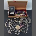 An interesting mixed box of costume jewellery and watches to include many bangles and beads