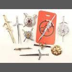 A small collection of kilt pins including one Bruges marked bayonet sweetheart pin and other attractive pieces