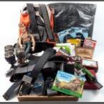 A mixed lot of bric-a-brac to include some plated cutlery, a train model, as found Lenovo tablet, a car seat support, a backpack, 4 Highland plated kilt belts, snow shoe grips, a Woody doll etc
