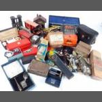A mixed electronic lot to include a boxed Argos 2 slice toaster, a set of Glider binoculars 10x50 in case (lenses in good condition), a Kodak 6-20 folding camera in case, a BALDA camera (AF), and a Polaroid land camera