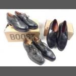 Two pairs of boxed black leather brogues, one by CLIFFORD JAMES size 8½ and the other size 10 with steel toe caps and heels plus 1 other pair by DB size 8