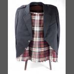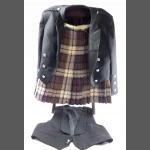 A Dress Macdonald kilt by HIGHLAND HOUSE size W36" and length 24", with a Prince Charlie jacket by GEOFFREY (tailor) size 46" short and matching waistcoat (missing one button)
