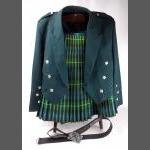 A gent's pure wool kilt made by GEOFFREY (tailor) of Edinburgh in the Macdonald of the Isles tartan, waist 30-32", length 25" approx with a green three buttoned waistcoat chest 42" approx
