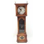A modern battery operated LONDON CLOCK COMPANY quartz chime clock, model number WP29-2, H60 x W28 x D12cm, glass intact, in need of TLC