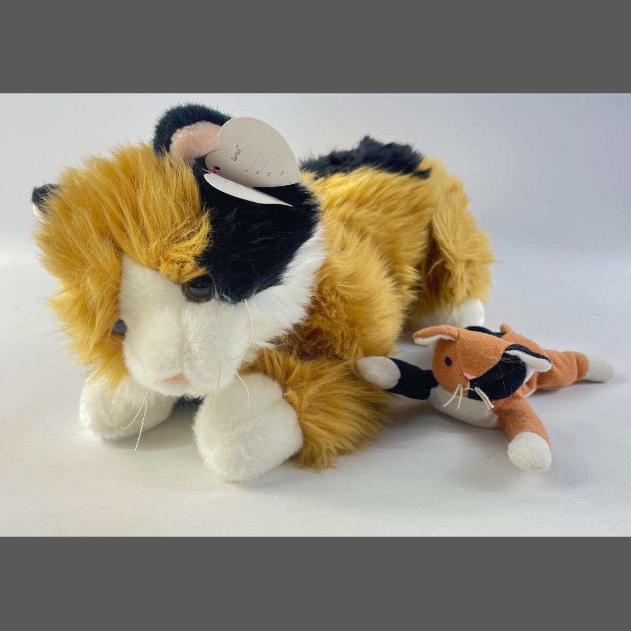 A collectible TY CLASSIC 'Carley' approx 30cm long and a small TY multi-coloured cat 15cm long