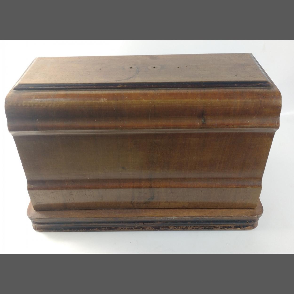 A vintage FRISTER & ROSSMAN sewing machine in wooden case. Unfortunately the key has been lost and handles are missing so the contents cannot be ascertained.