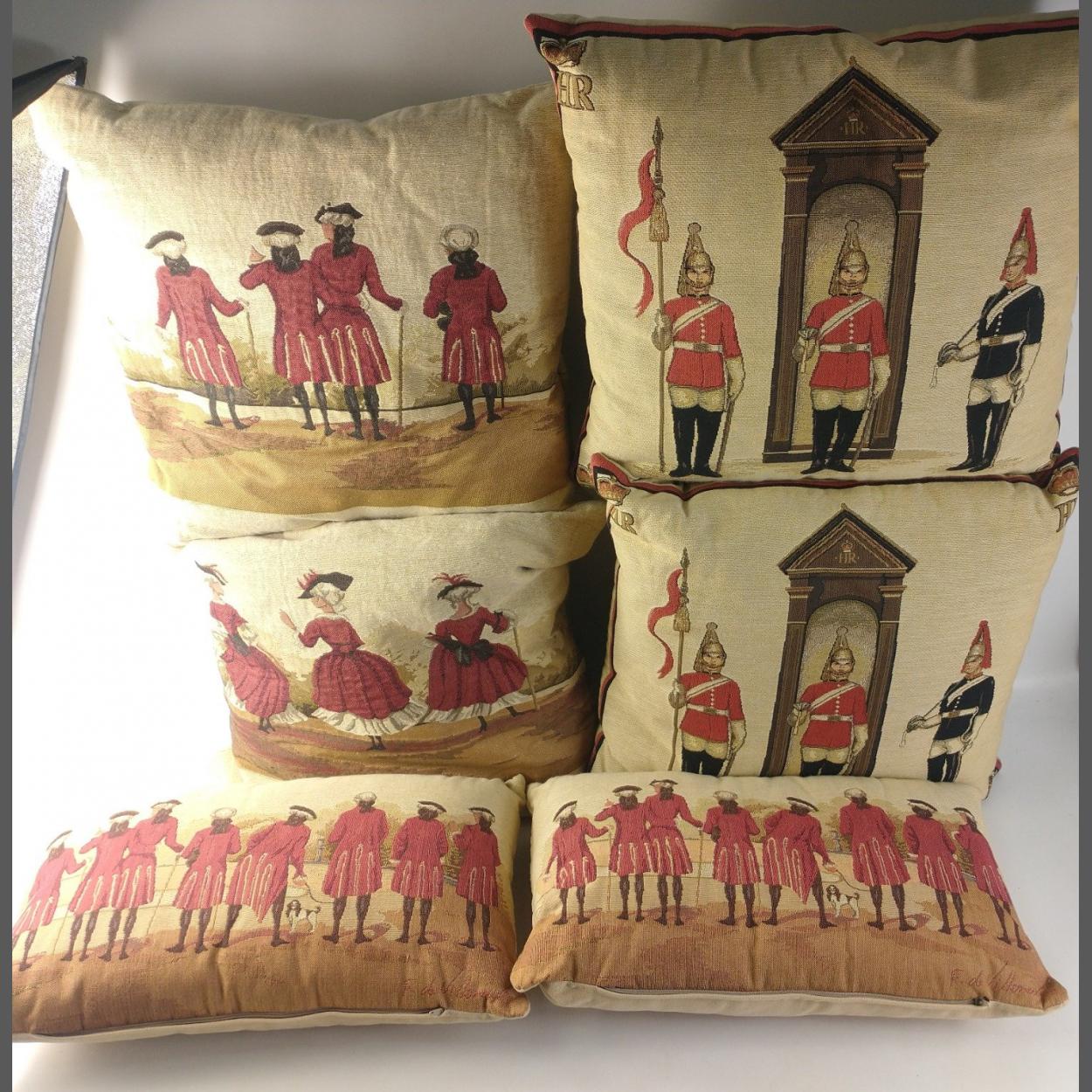 Three pairs of cushions, 4 are 45x42cm approx, the other two are 45x28cm approx