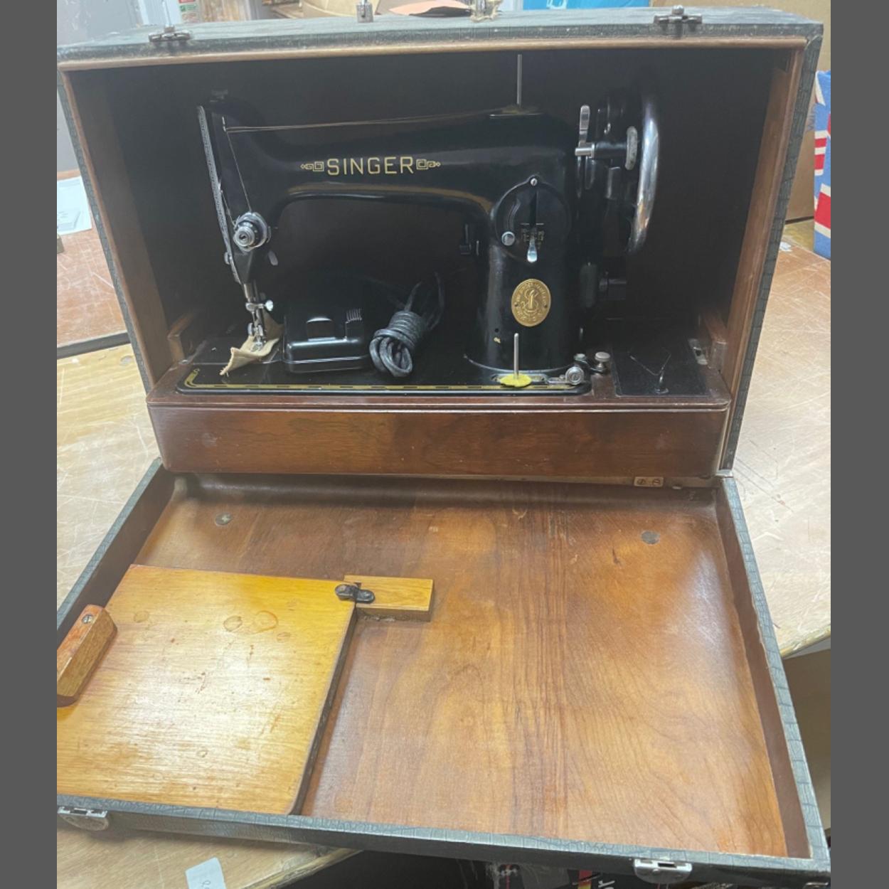 A VINTAGE SINGER electric sewing machine in original case with serial No EE912060 (Dec 1948) - lovely condition!