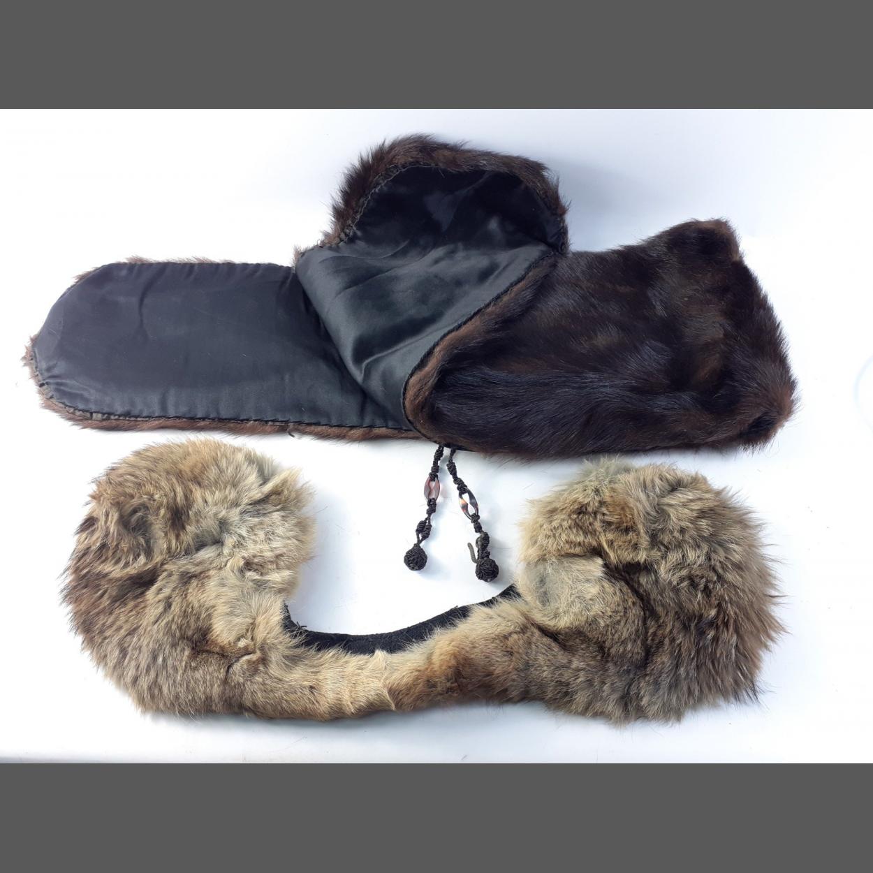 Two fur stoles, one full length and the lighter one a shoulder cover.