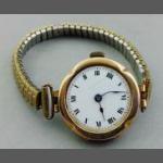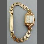 A 375 stamped vintage ladies wristwatch with rolled gold stamped bracelet. 14mm case, not running. Gross weight 12.1g approx
