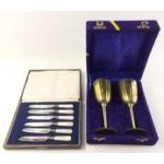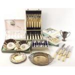 A quantity of silver plated table ware to include one small canteen, three other cased sets and other loose items.