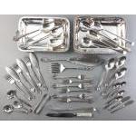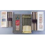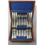 A 12 place knife and fork set on two trays inside fitted case. All pieces with Mother of Pearl handles. An attractive and useable set.