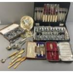 A collection of plated cutlery. Various items and pieces, a good selection.
