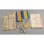WWI Medal pair to 3292 Pte. J Crawford Scottish Rifles. In part box and original addressed envelope.
