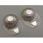 A stunningly pretty small pair of silver hallmarked tea caddy spoons in the shape of jockeys hats. Hallmarked Sheffield 'C' Francis Howard Ltd. Each 5cm and gross weight 20.6g approx