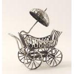 A 925 stamped small model of a pram with umbrella. 6cm across, weight 44.3g approx