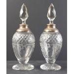 A beautiful pair of antique sterling silver and cut glass perfume bottles with stoppers. Makers London William Henry Sparrow, London S (1913) hallmark. Lovely condition, no chips, cracks etc, stoppers good.