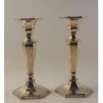 A pair of silver hallmarked candlesticks, Birmingham 1972, each 18cm high approx with weighted bases. Total gross weight 600g approx