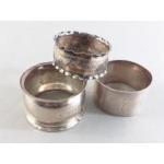 Three silver hallmarked napkin rings, total weight 39g approx