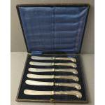 A cased set of silver handled butter knives. All in worn condition.