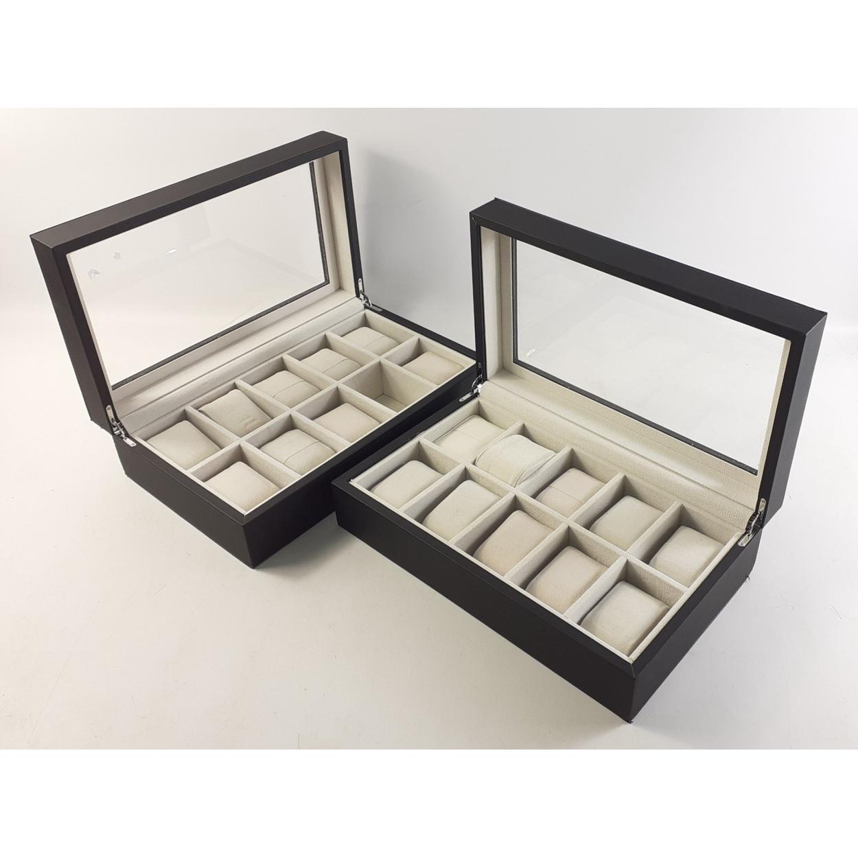 Two padded watch display cases each with 10 sections and cushions each measures 33x20x9cm approx