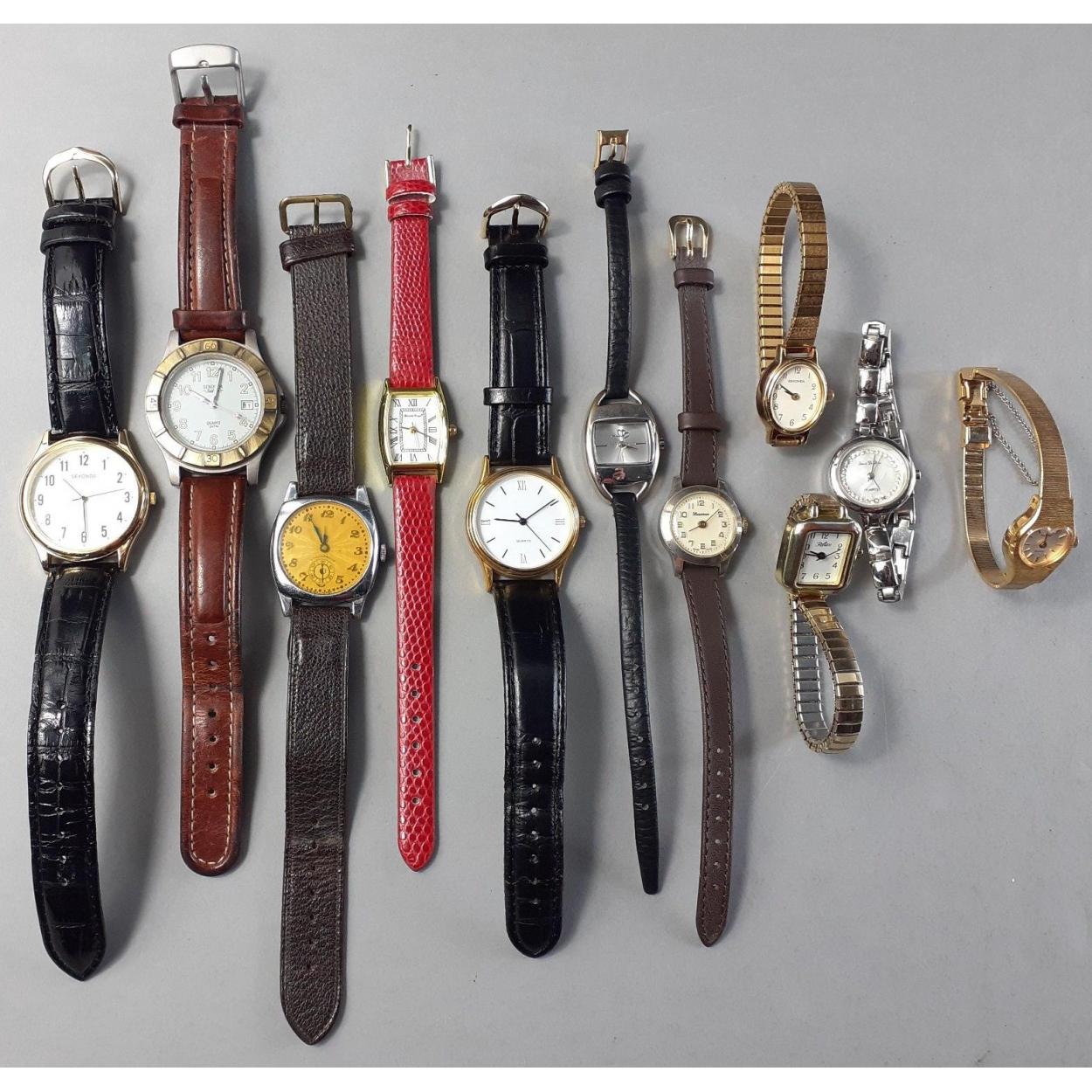 A box containing a selection of modern dress watches (and one older). A good selection of pretty pieces, batteries likely required.