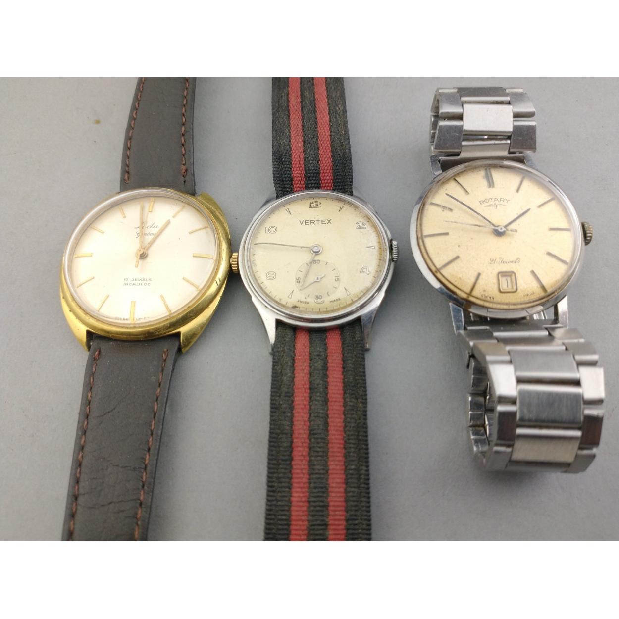Three classic gents mechanical wrist watches to include Leda (working), Rotary 21 jewels and a Vertex both non-running