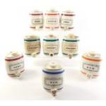 VINTAGE WADE decanter barrels x 9. In generally good condition with spouts and stoppers. Each stands approx 14cm tall