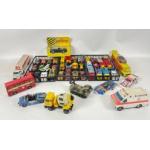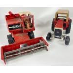 A vintage MASSEY FERGUSON model 760 combine harvester (some damage to cab roof, broken part comes with piece) 37cm long 18cm high, plus a MASSEY FERGUSON model 595 tractor 23cm long 17cm high